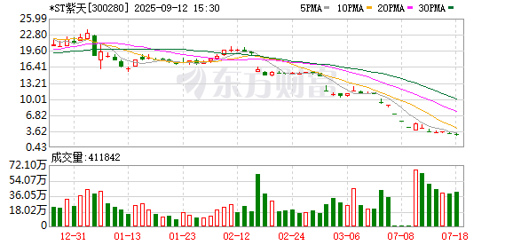 *ST紫天9月14日公告,公司股票于2025年9月15日复牌并进入退市整理期,退市整理期为15个交易日,预计最后交易日期为2025年10月13日,敬请投资者审慎投资、注意风险。