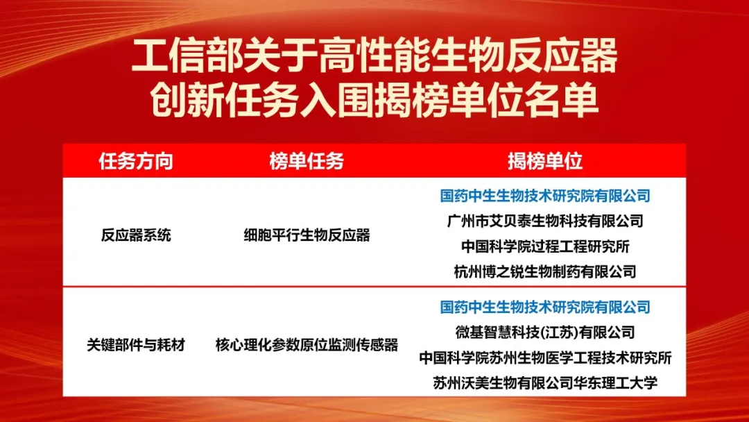 近日,国家工业和信息化部公布“高性能生物反应器创新任务揭榜单位”名单。国药中生生物技术研究院(新型疫苗国家工程研究中心)(以下简称“中国生物研究院”),凭借“生物医药产业链优化测试平台”的超前布局与技术积累,成功揭榜“细胞平行生物反应器”与“核心理化参数原位监测传感器”两项核心任务。