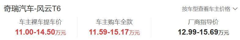 风云T6售价12.99-15.69万元,车主提车价为11.00-14.50万元,标配车型优惠了1.99万元,这其中可能还包含了报废补贴或置换补贴,这么来看的话,这款车的优惠力度并不大,但是价格在同级插混SUV中还不贵。