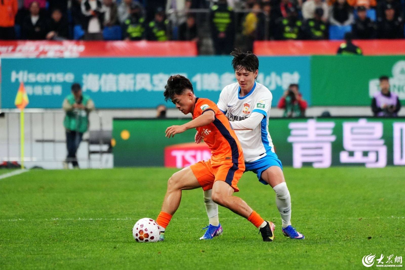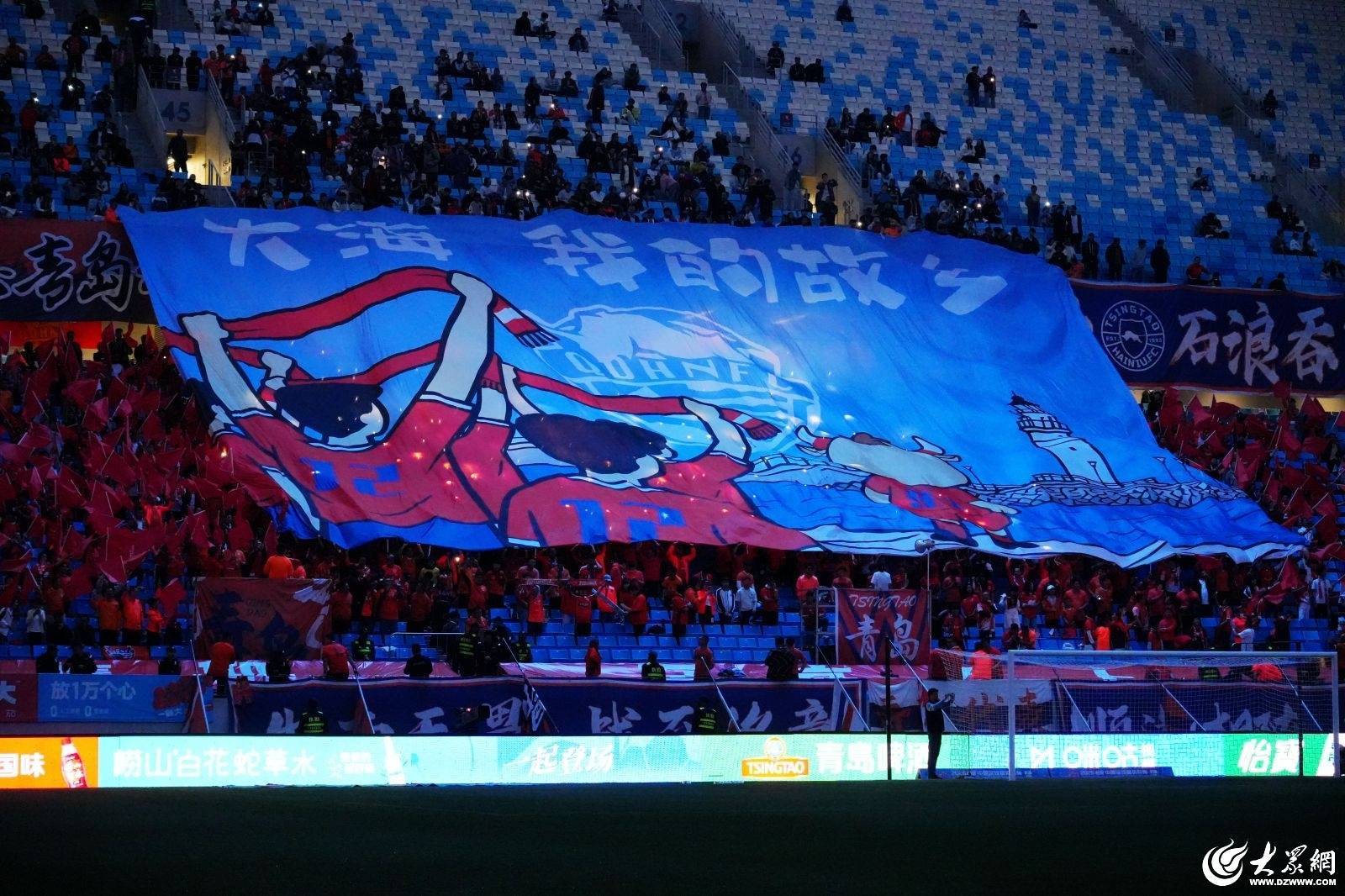 4月17日晚,中超联赛第六轮,万众瞩目的“青岛德比”首回合在青春足球场上演。上半场,叶博亚破门被吹,李昊屡现神扑,VAR多次抢戏,海牛队三度攻门击中立柱;下半场,韦子弦一脚似传似射再次中柱,此后双方均再无建树。最终在全场28905名的球迷见证下,青岛海牛与青岛西海岸以0-0捂手言和,期待次回合对战。值得一提的是,当晚北看台球迷在赛前打出了“大海,我的故乡”巨型tifo,岛城球迷纷纷拿出手机打开闪光灯点亮球场,伴着《大海,我的故乡》歌曲一同哼唱,共同享受这份独属于“足球城”的浪漫足球盛宴。
